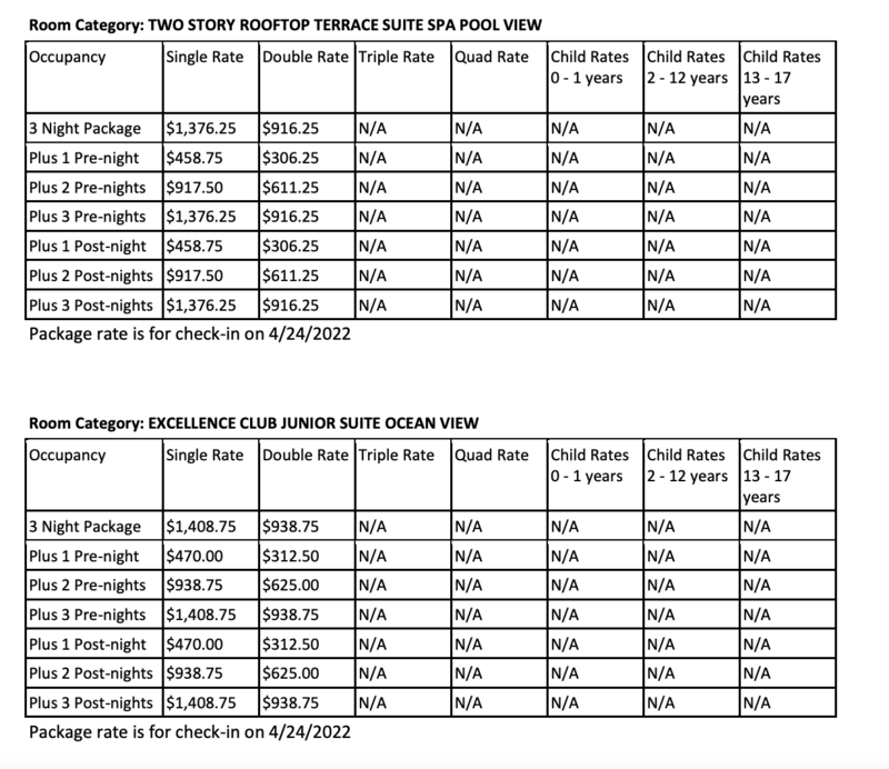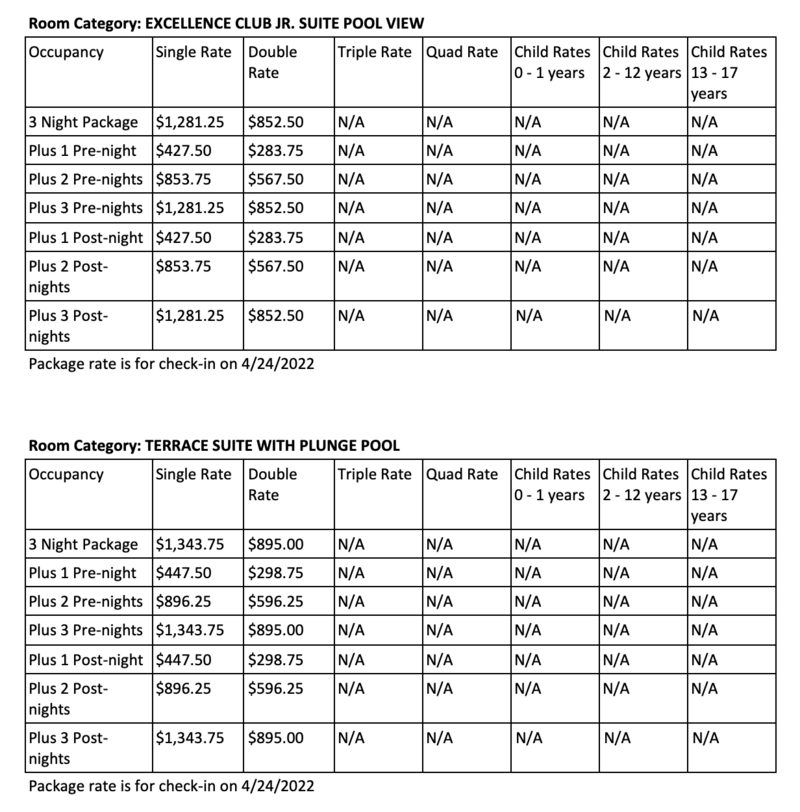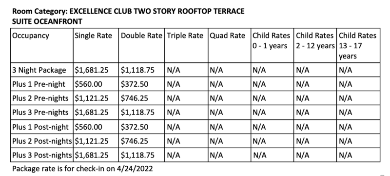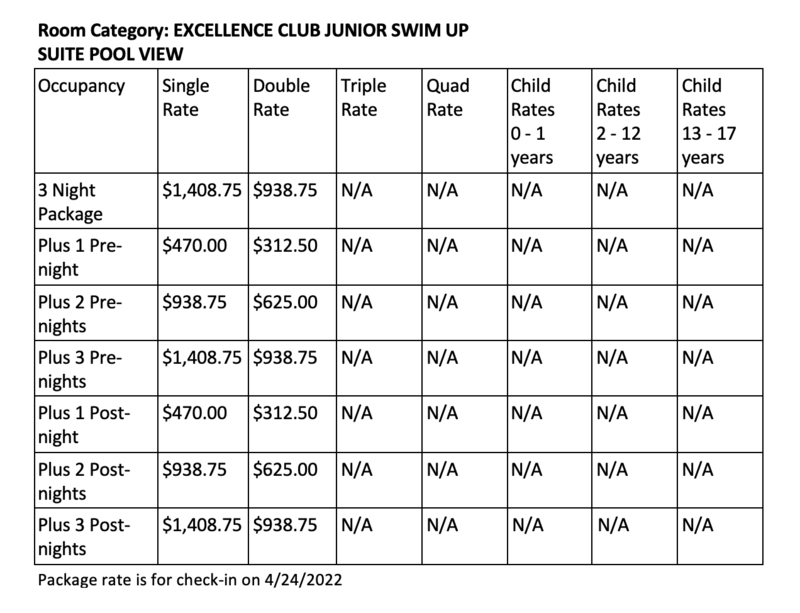 ROOM RATES FOR EXCELLENCE PLAYA MUJERES